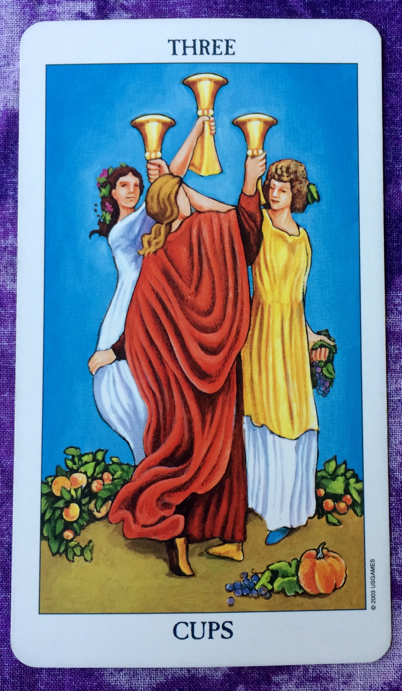 The Tarot card of the day is the Three of Cups. This is a card about celebrating your accomplishments. This is in line with yesterday’s card, which showed that you can now relax and enjoy the fruits of your hard work.