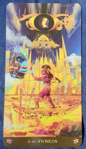 The Tarot card for today is the Six of Swords. This could be a period of time where you are moving away from a stressful or chaotic situation to one that is calmer. This is in keeping with the full moon cycle we are in, where things that no longer serve us are being released in our life. Know that your decision to let go and seek a safe environment is one of the ways for you to practice self love.